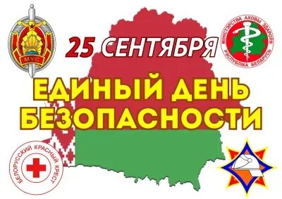 Министерством по чрезвычайным ситуациям Республики Беларусь совместно с заинтересованными министерствами и ведомствами Республики Беларусь 25 сентября 2025 года проводится Единый день безопасности, в задачи которого входит профилактика чрезвычайных ситуаций, правонарушений и преступлений, обучение поведению в условиях пожаров и иных чрезвычайных ситуаций, а также оказанию первой медицинской помощи.